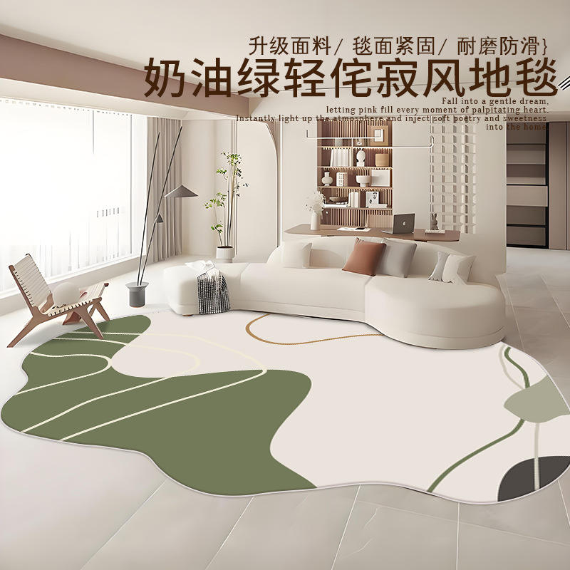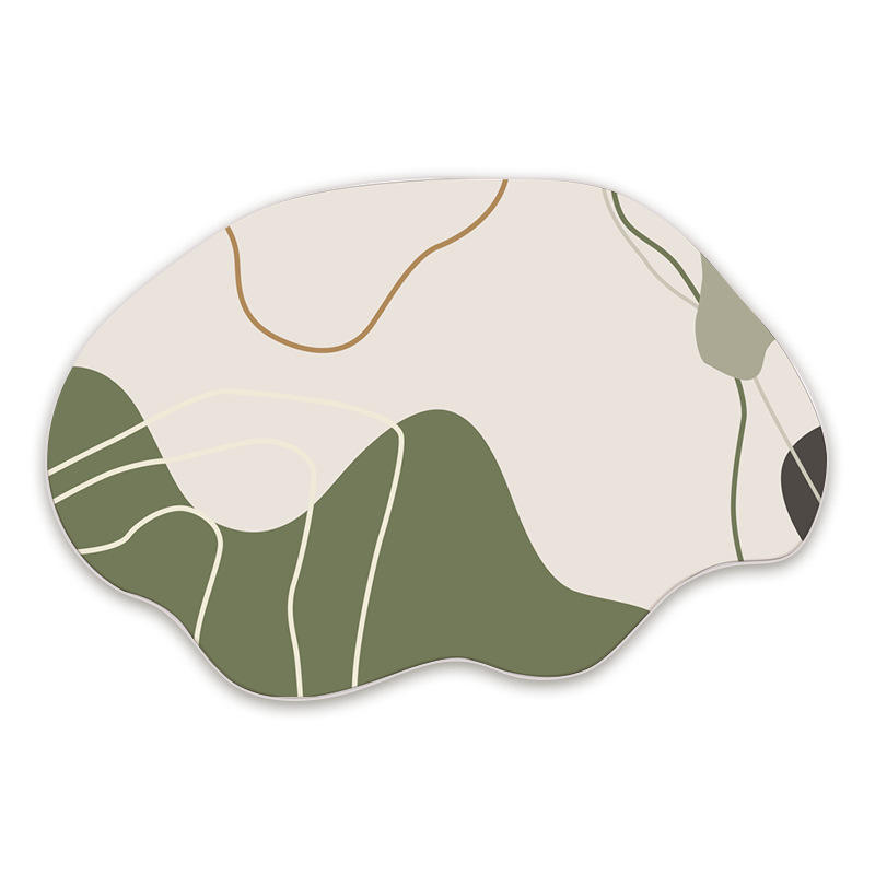 Tapis Moderne Abstrait Forme Originale Crème Vert Beige Antidérapant pour Salon Chambre Nettoyage Facile Lavable à l'Eau
