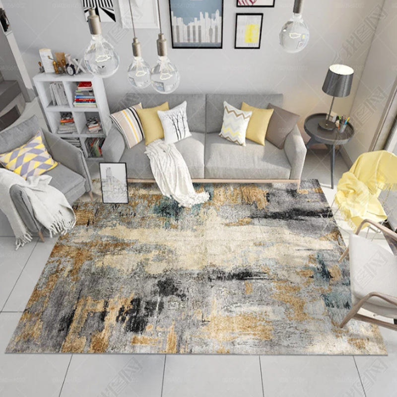 Tapis Moderne Abstrait Rectangulaire en Fibre de Polyester Lavable pour Salon, Décoration Intérieure Grande Taille Motif 1 Motif 2