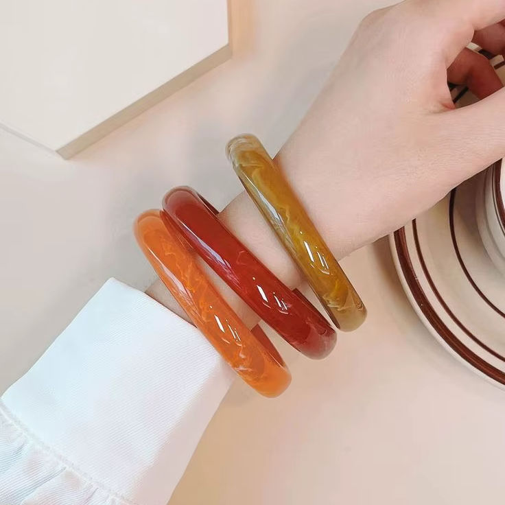 Ensemble de bracelets géométriques en résine au design abstrait moderne, modèle unique à ouverture latérale, provenant d'Inde, pour cadeaux de Noël, par AFZA ENTERPRISES