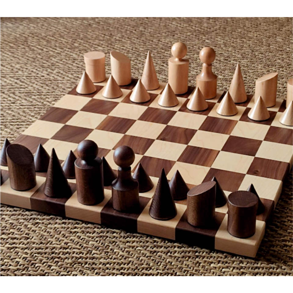 Jeu d'échecs en bois géométrique abstrait moderne | Échiquier de style nordique minimaliste en noyer et érable de qualité supérieure, décoration d'intérieur
