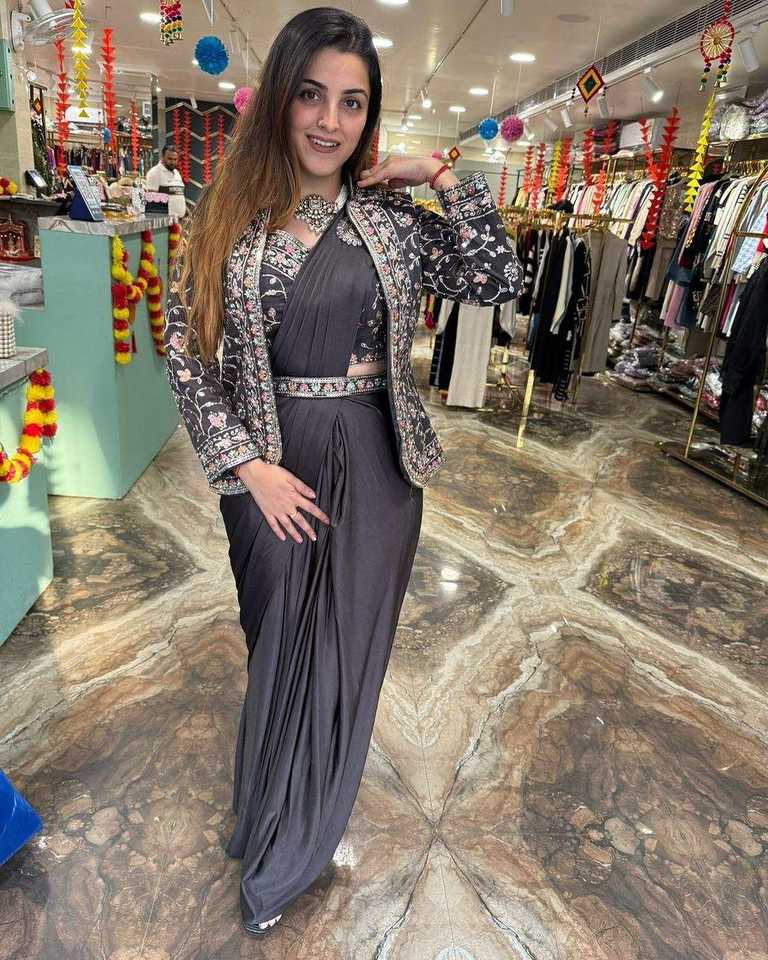Sari fantaisie en tissu satiné moderne et abstrait, style tendance, prêt à être expédié depuis l'usine, prix abordable aujourd'hui