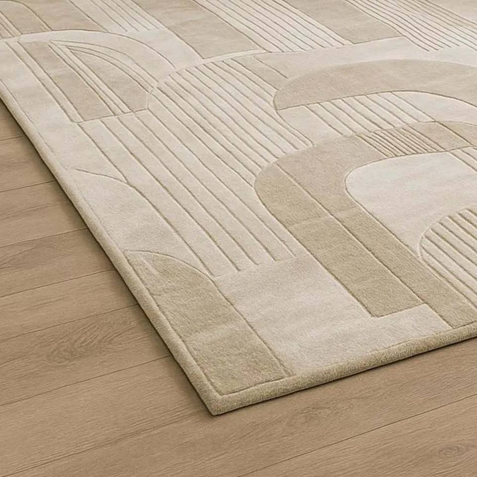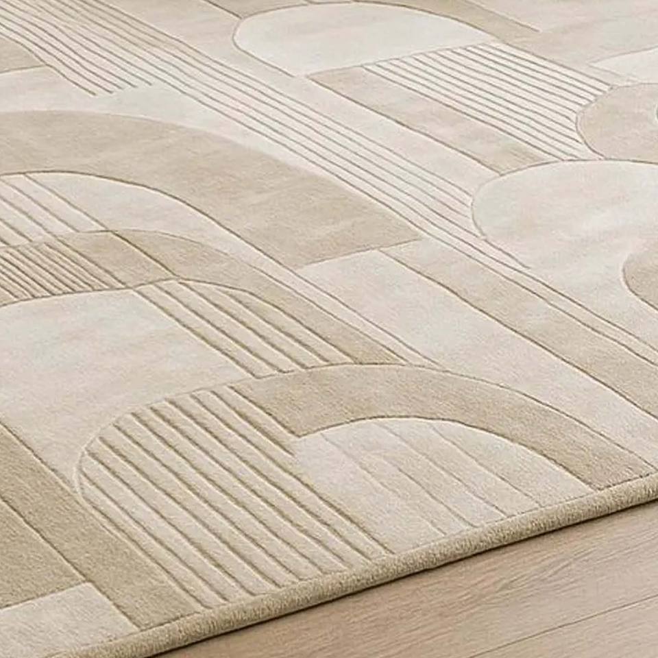 Tapis Moderne Abstrait Neutre Tufté à la Main, Doux et Gaufré, Antidérapant pour Salon, Chambre, Bureau, Hôtel