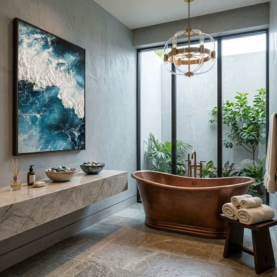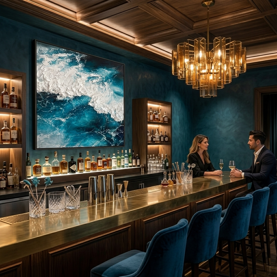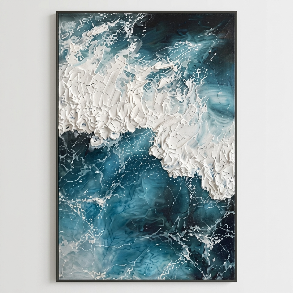 Peinture à l'huile abstraite moderne à texture océanique, art mural fait main, toile 3D côtière pour hall d'hôtel et décoration intérieure