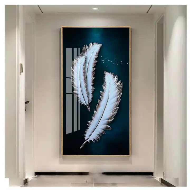 Décoration de porche abstraite moderne, impression HD de plumes, peinture sur porcelaine cristalline, art mural nordique, tableau pour salon, décoration intérieure