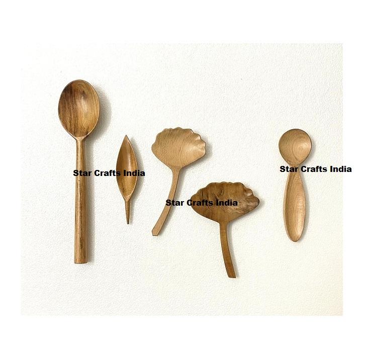 Ensemble d'ustensiles à salade en bois d'acacia américain moderne - Fourchette et cuillère de forme irrégulière, écologiques, compatibles lave-vaisselle, cadeau pour la maison, pour usage personnel