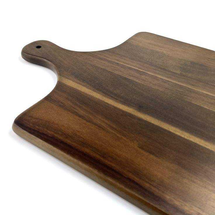 Modern Acacia Wood Prolate Cutting Board with Handle for Kitchen Vegetables and Countertop Preparation