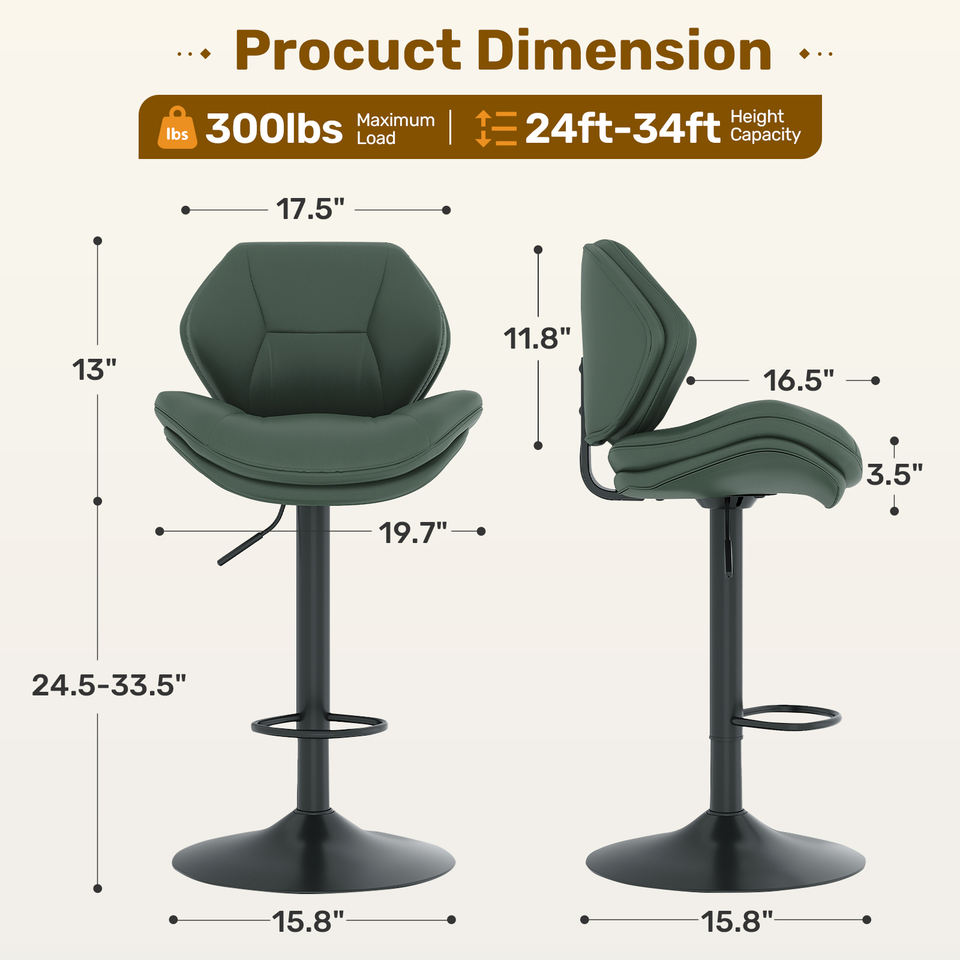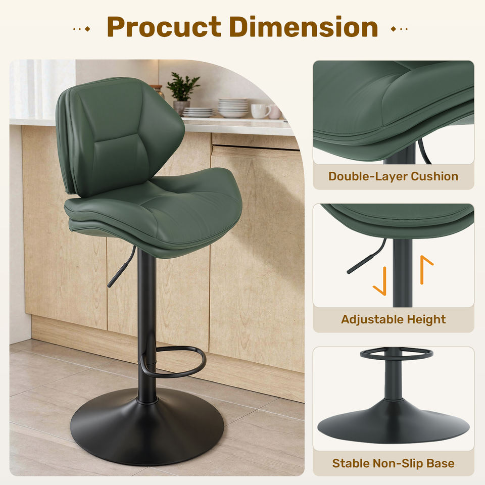 Tabourets de bar rustiques modernes et réglables pour l'extérieur, ergonomiques, en cuir PU, avec structure en acier inoxydable et coussin double couche pour comptoir