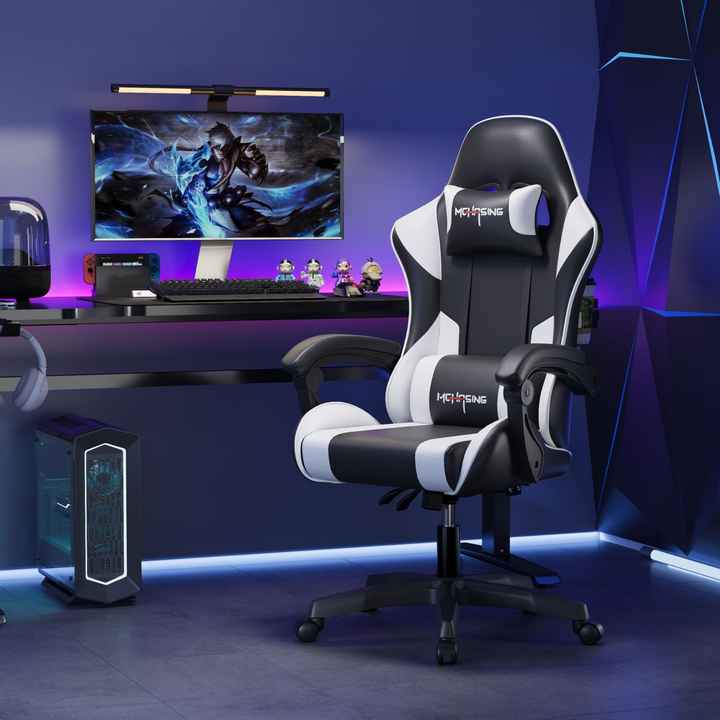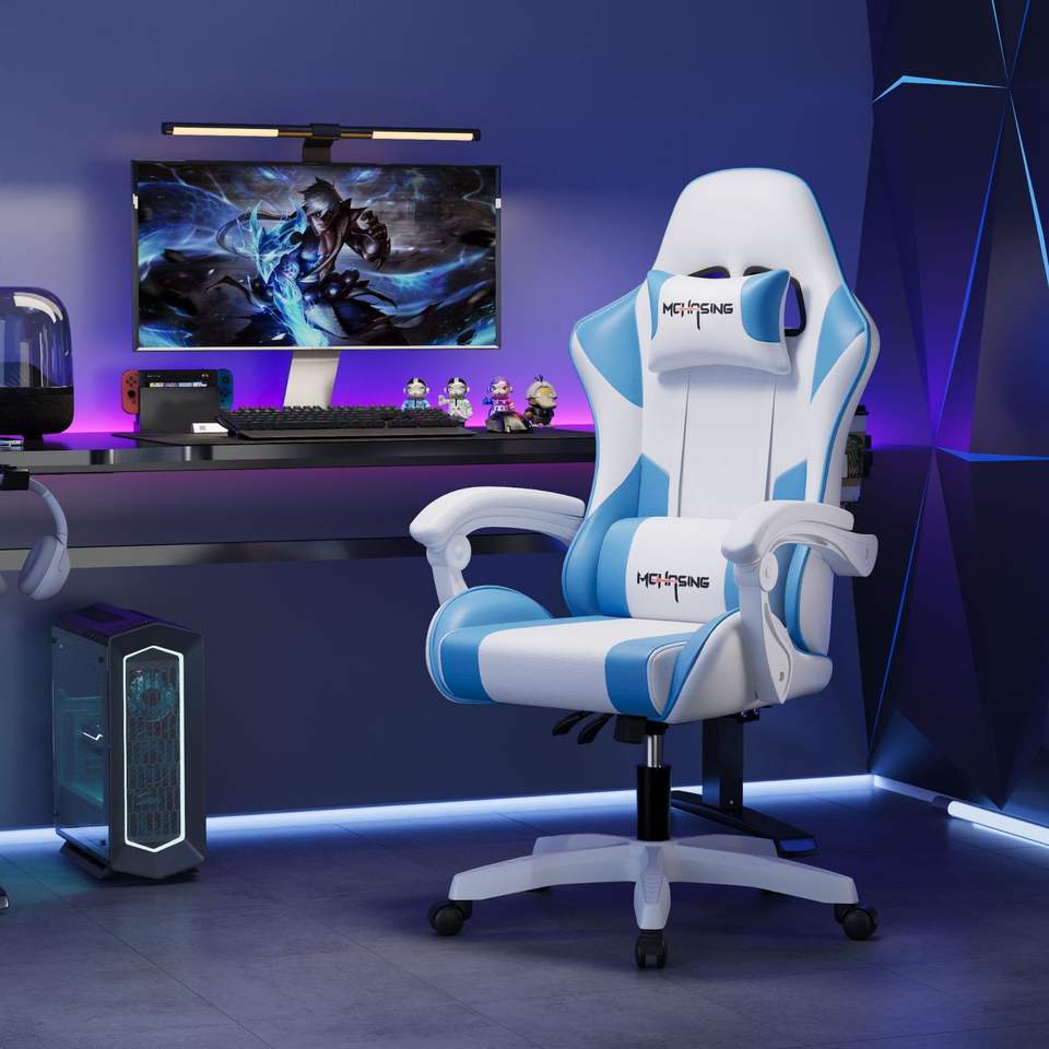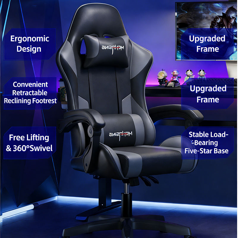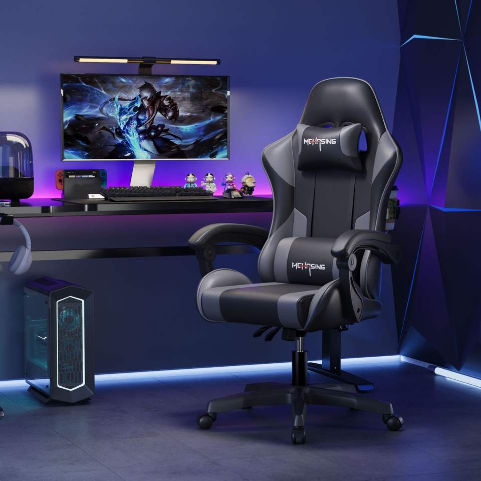 Chaise de jeu moderne réglable en cuir PU, chaise de bureau pivotante confortable, rotative pour la maison, utilisation en cybercafé, vente en gros
