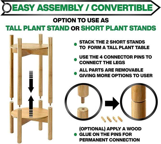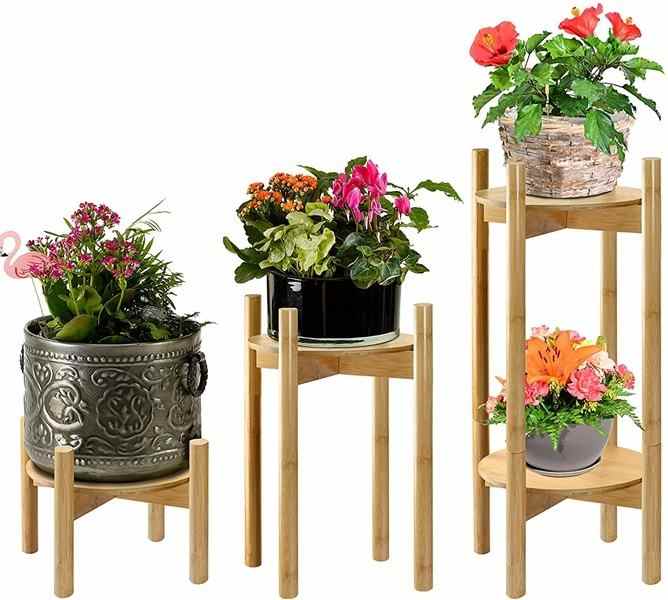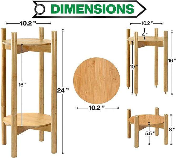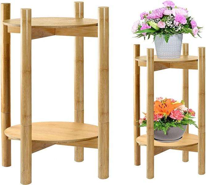 Support pour plantes moderne et réglable Ensemble de supports pour fleurs en bambou Support pour plantes haut en bois pour pots de fleurs d'intérieur pour utilisation au sol