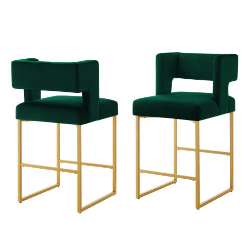 Tabourets de bar modernes réglables en velours avec dossier carré ouvert unique, lot de 2, polyvalents pour salle à manger et chambre à coucher