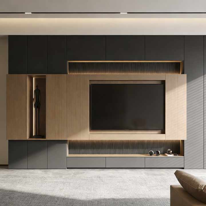 Modern Adjustable Wooden TV Cabinet OEM Service Living Room Furniture Integrated TV Stand Storage Cabinet