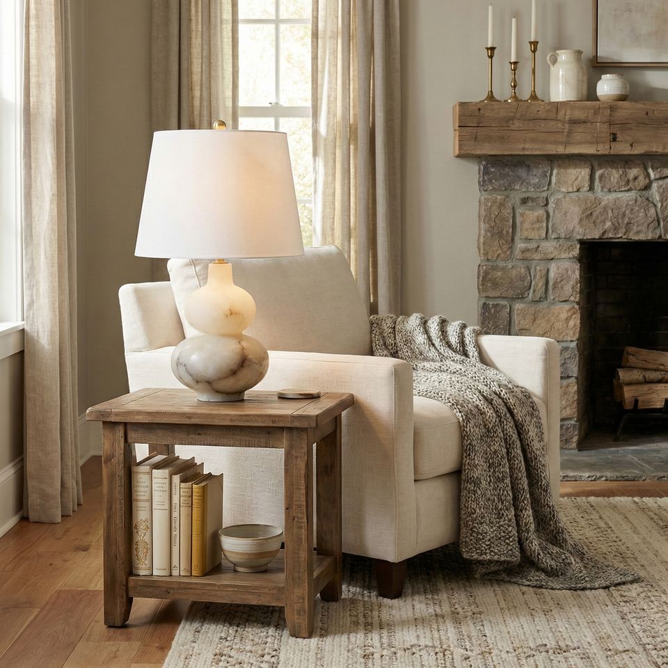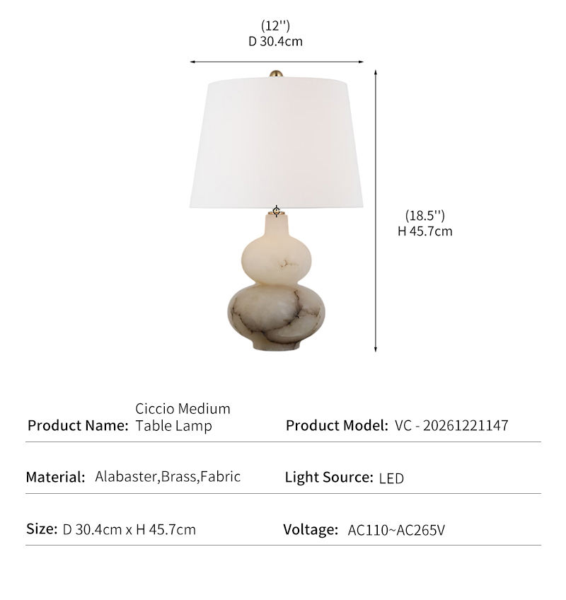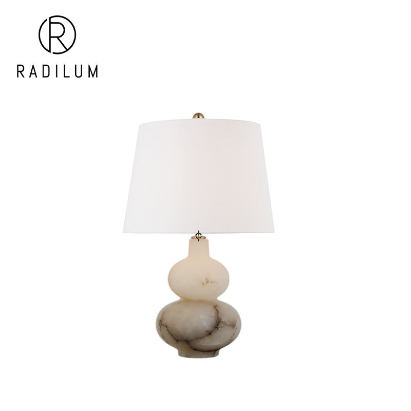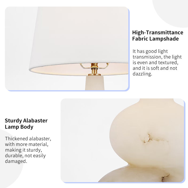 Lampe de table moderne en albâtre, décoration de chambre d'hôtel de luxe, base en pierre naturelle double gourde, abat-jour en tissu, lampe de table LED Ciccio de taille moyenne
