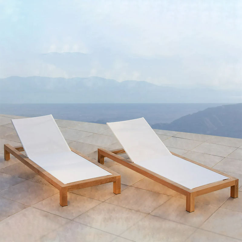Ensemble de chaises longues modernes en bois massif teck, patio extérieur, jardin, chaise longue pour hôtels