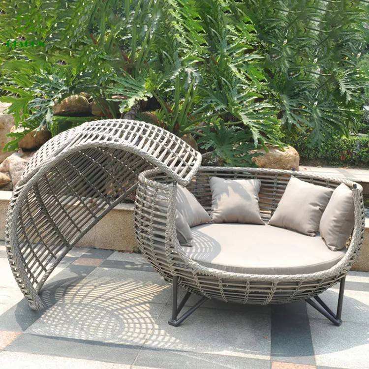 Chaise longue moderne en aluminium pour l'extérieur Chaise longue de jardin en rotin et lit de jour en osier pour les hôtels et l'extérieur
