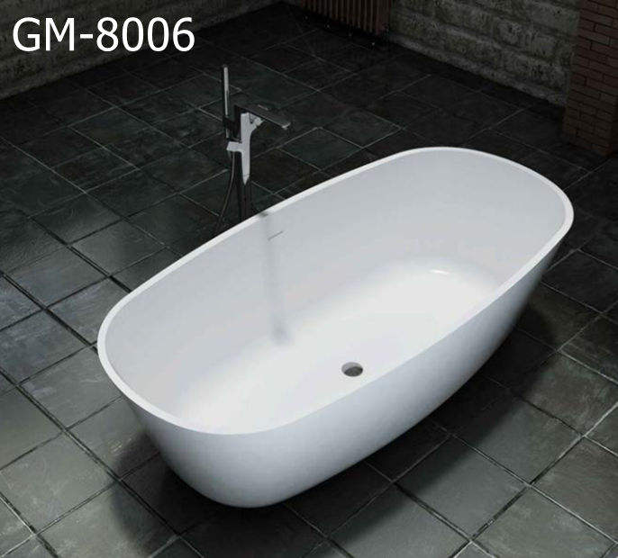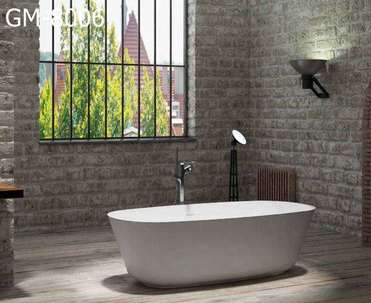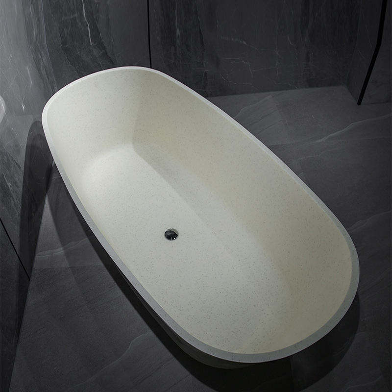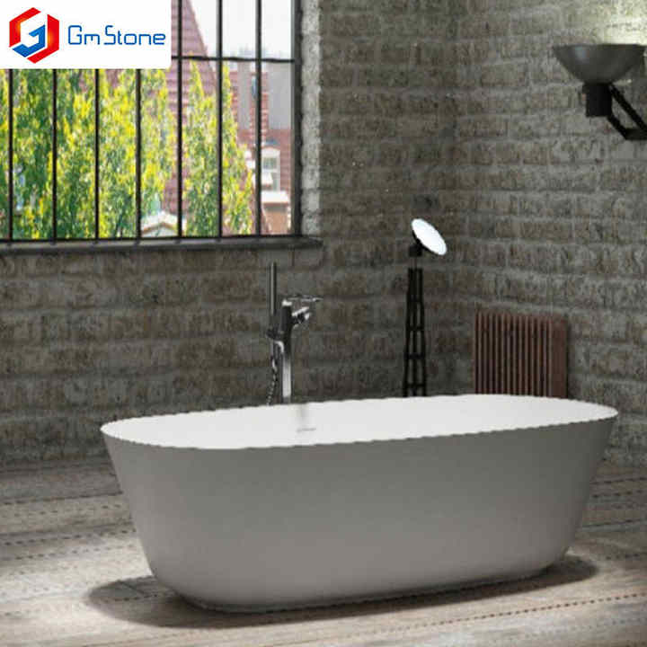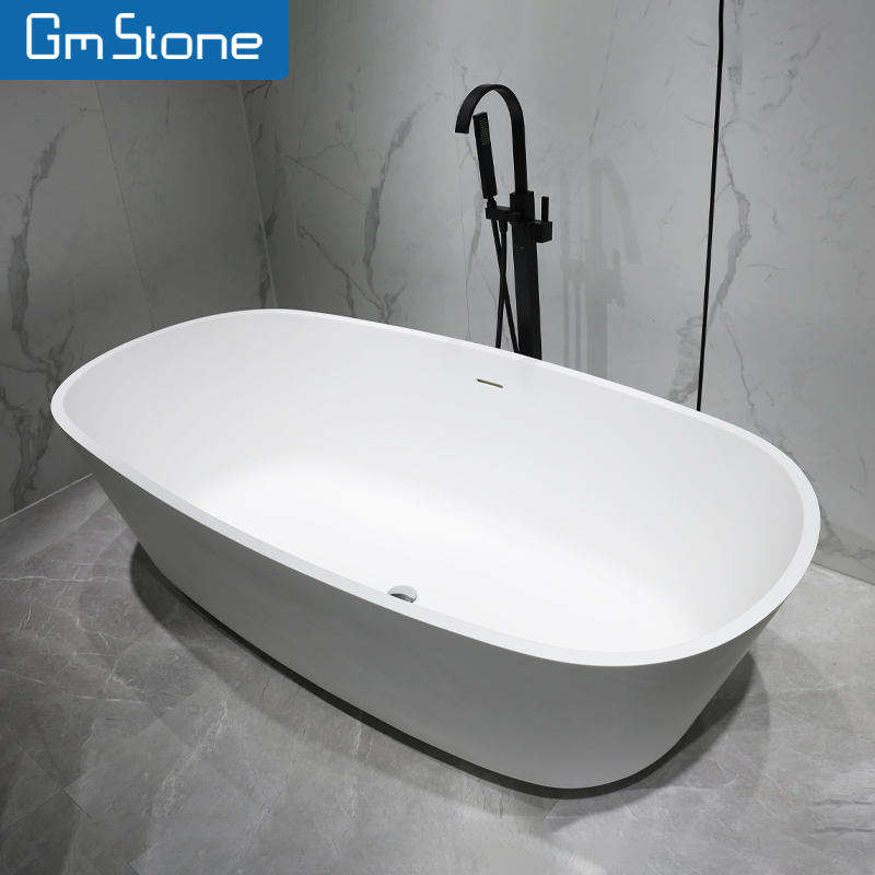 Baignoire autoportante en pierre à surface solide au design classique américain moderne avec fonction de trempage et accessoire d'égouttage pour salles de bain
