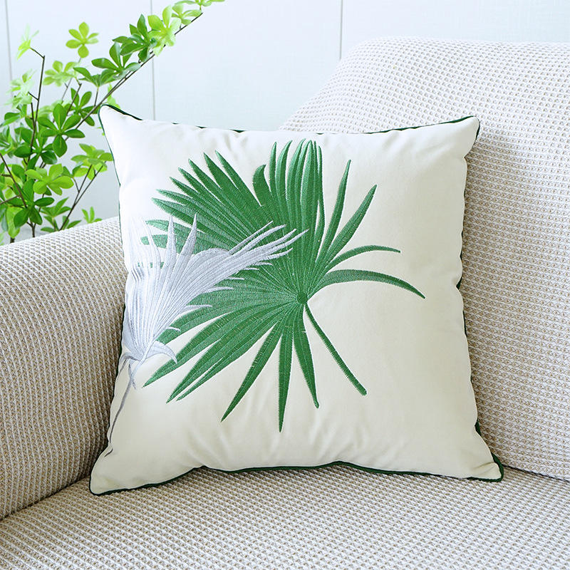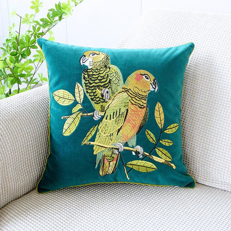 Couverture d'oreiller de broderie de tournesol et de perroquet de campagne américaine moderne forme carrée pour la maison hôtel salon canapé baie vitrée