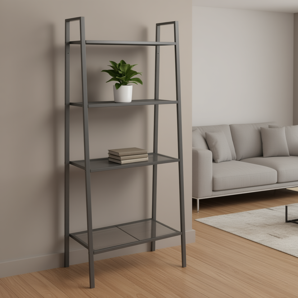 Étagère à marches en métal anthracite moderne, bibliothèque à trois niveaux, rectangulaire, pour le salon