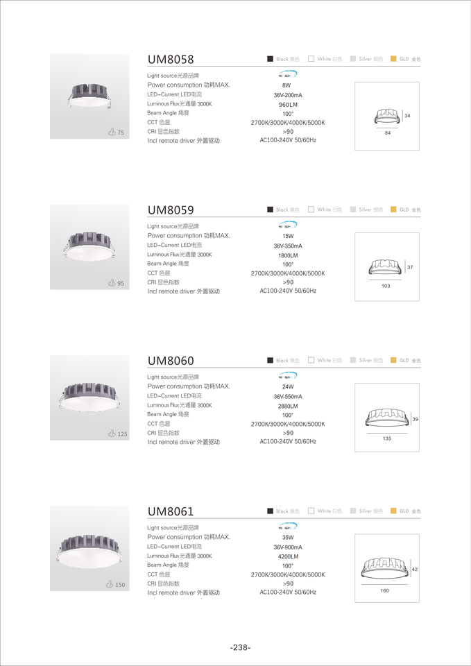 2700K, 3000K, 4000K, 5000KColor Temperature(CCT)
