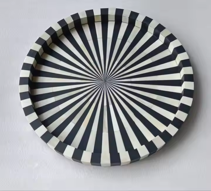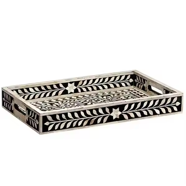 Plateau décoratif antique moderne fait main en incrustation d'os avec motif floral Plateau de service de cuisine par Crescent Crafts
