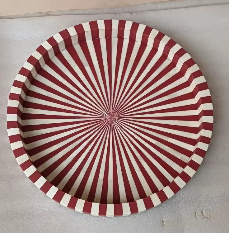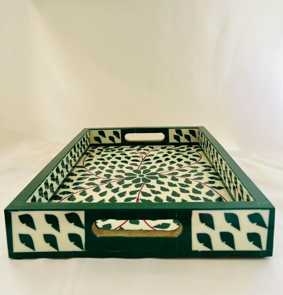 Plateau de service de cuisine artisanal moderne et antique en bois décoratif avec incrustations de os d'Inde par Barkah Star