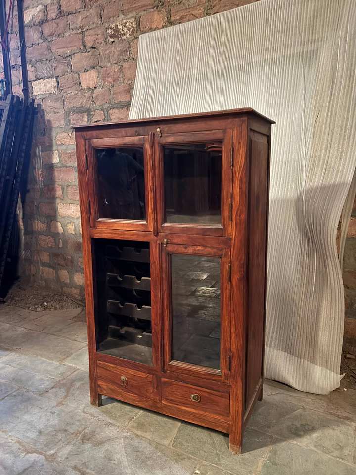 Modern Antique Luxury Classic Vintage Medium Size Elegant Brown Solid Wood Almirah Kitchen Cabinets