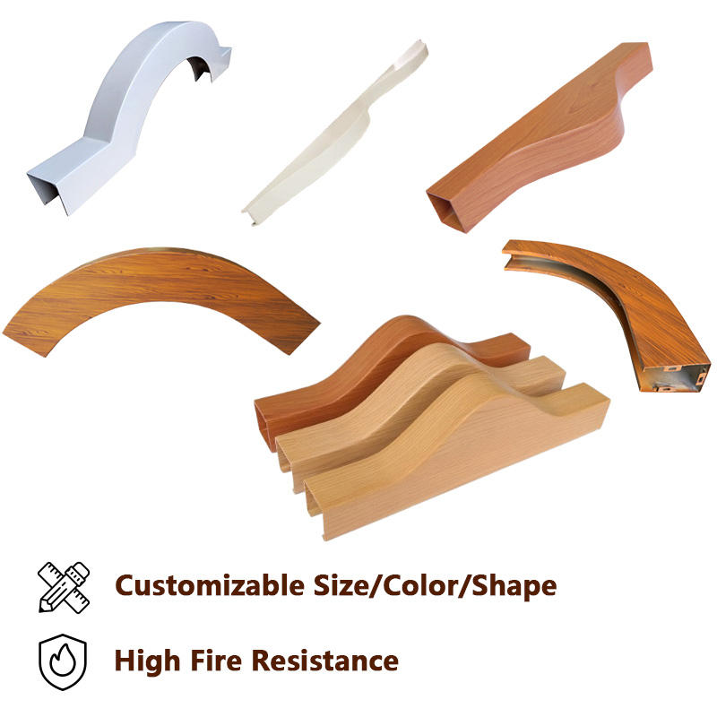 Panneau de plafond suspendu en aluminium à lames métalliques en forme d'arc moderne pour bureau, magasin, restaurant, faux plafond