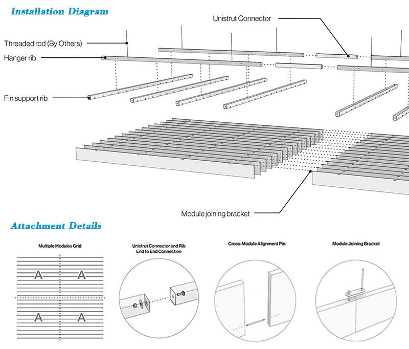 Type d'écriture:Plafond à déflecteur ondulé en aluminium