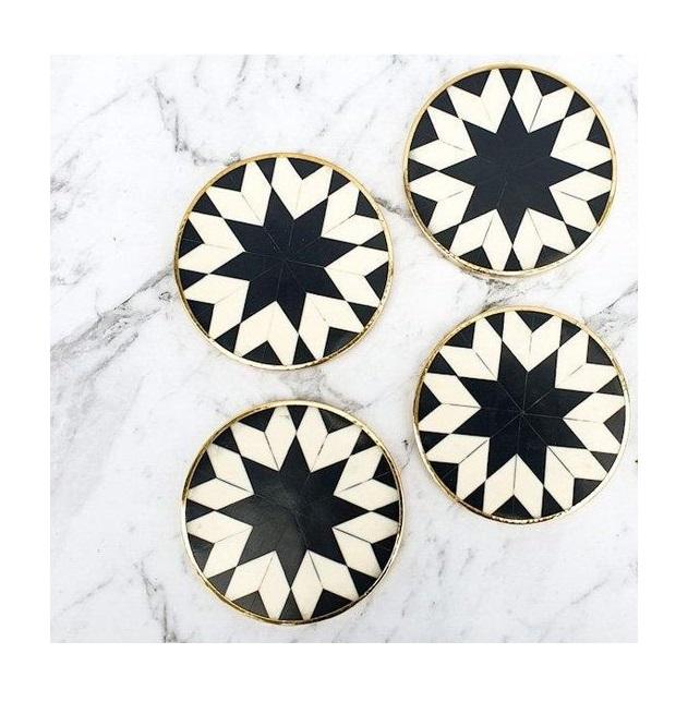 Ensemble de 4 dessous-de-verre modernes en os incrusté à motif flèche pour thé, café, boissons, vaisselle, décoration de cuisine, protection thermique