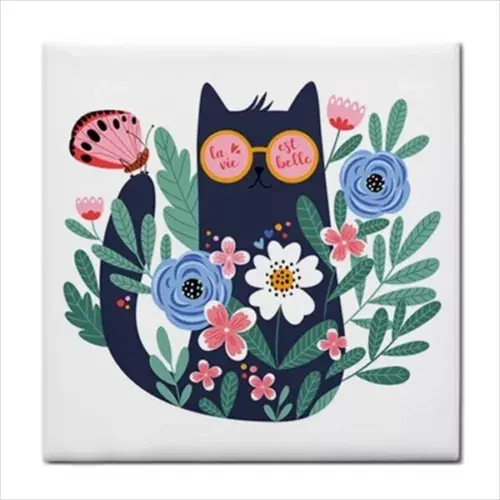 Carreaux de céramique, dosseret, bordure, fleurs de chat, félin, kitty, accent mural pour cuisine ou salle de bain, art moderne