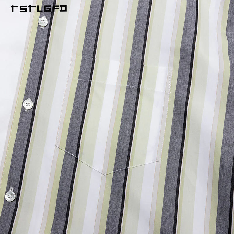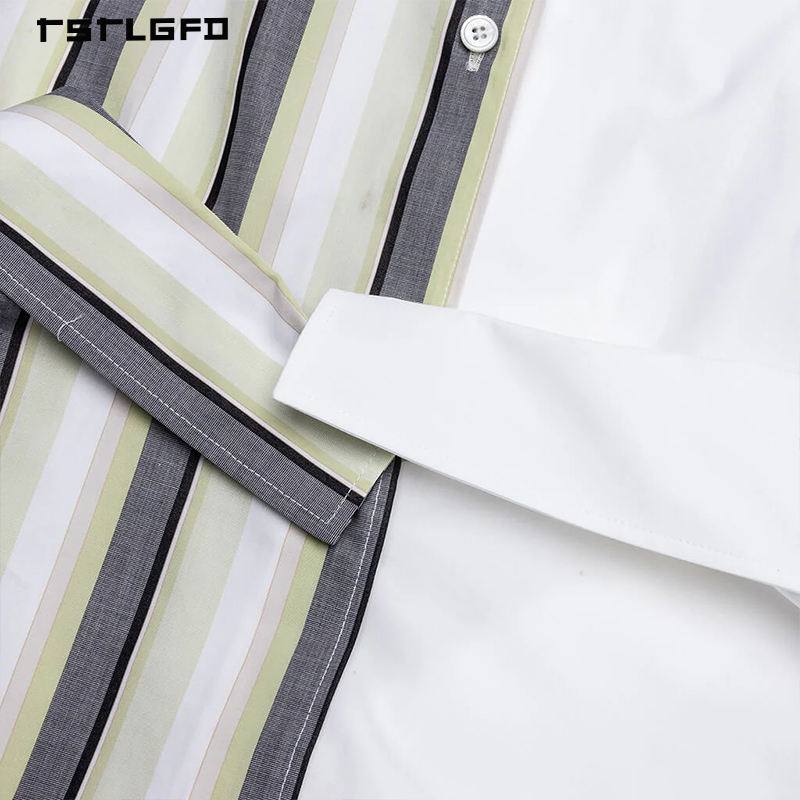 Chemise à manches courtes asymétrique moderne pour homme, patchwork, rayures contrastées, col boutonné, haut graphique de créateur, 100% coton