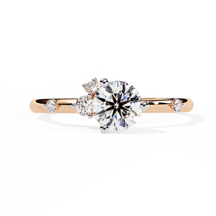 Bague de fiançailles moderne en diamant de laboratoire de coupe ronde asymétrique, bijoux de mariée contemporains uniques, bague cadeau raffinée