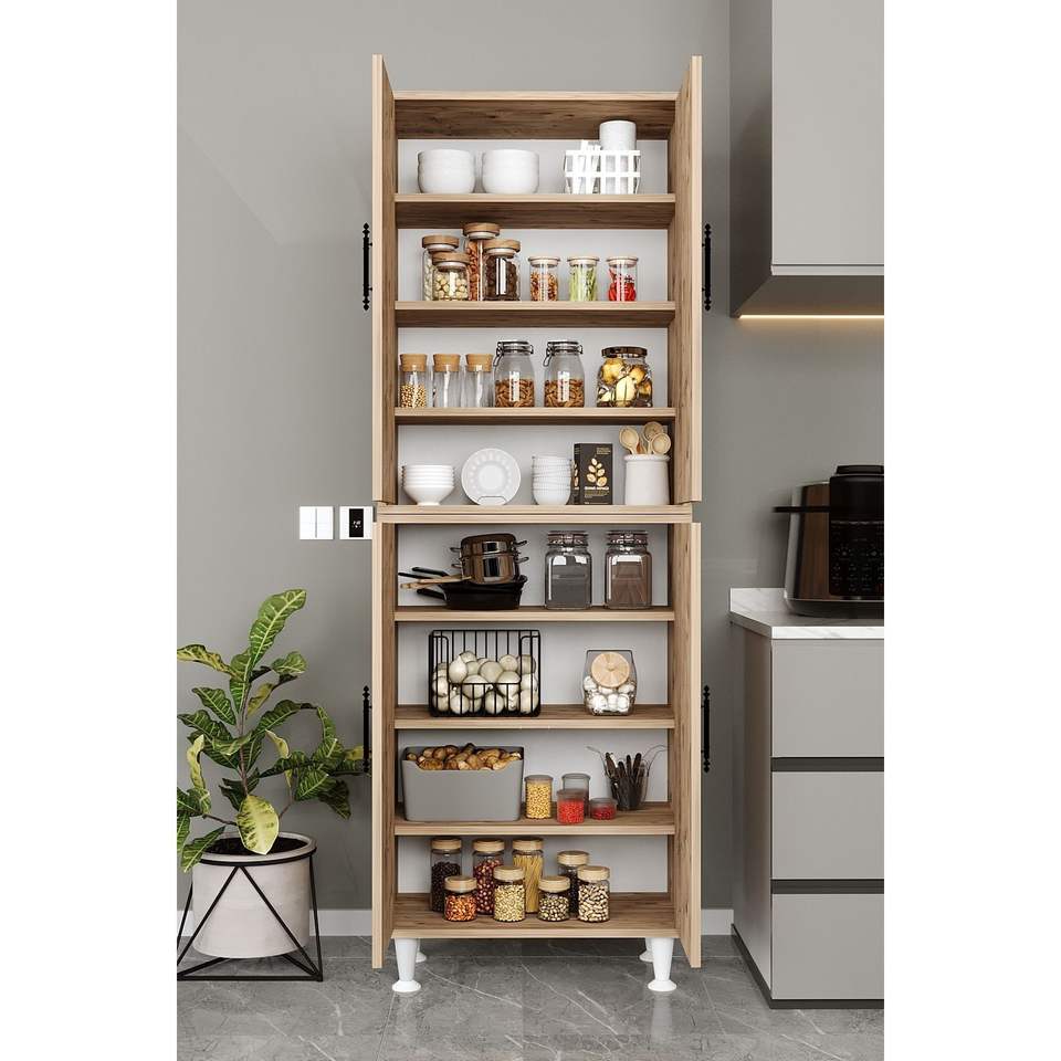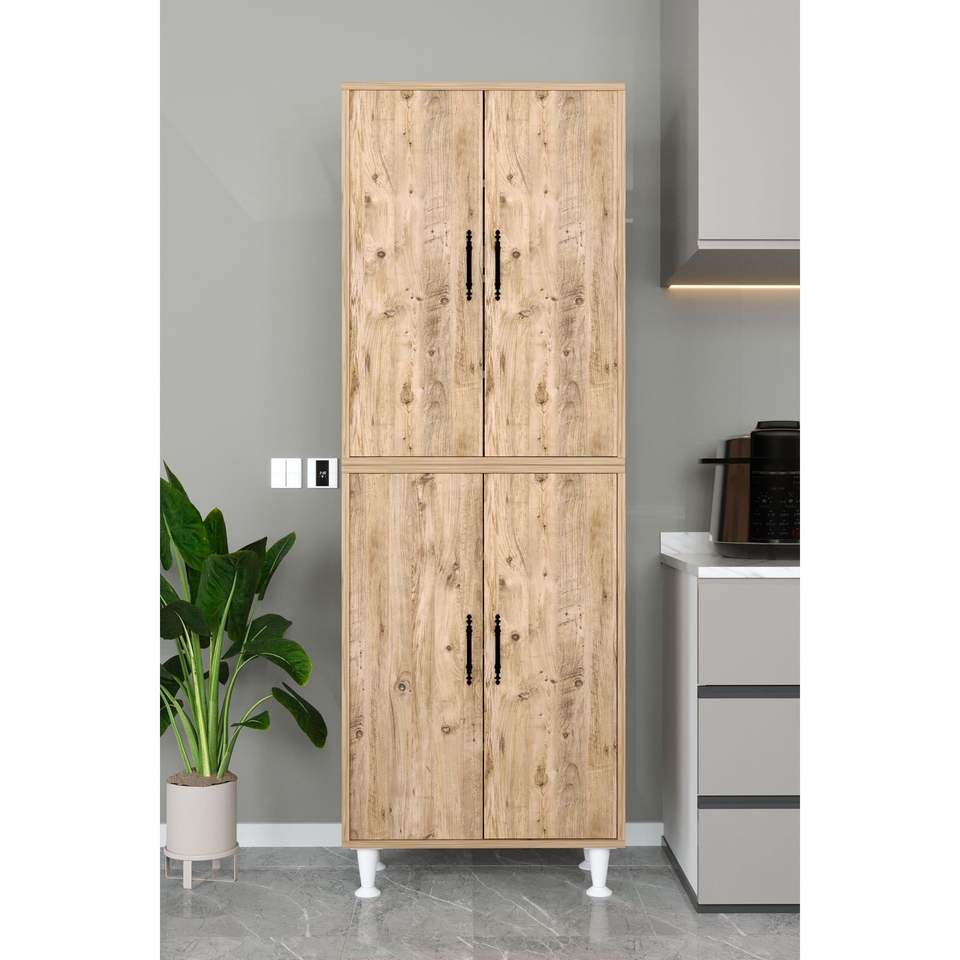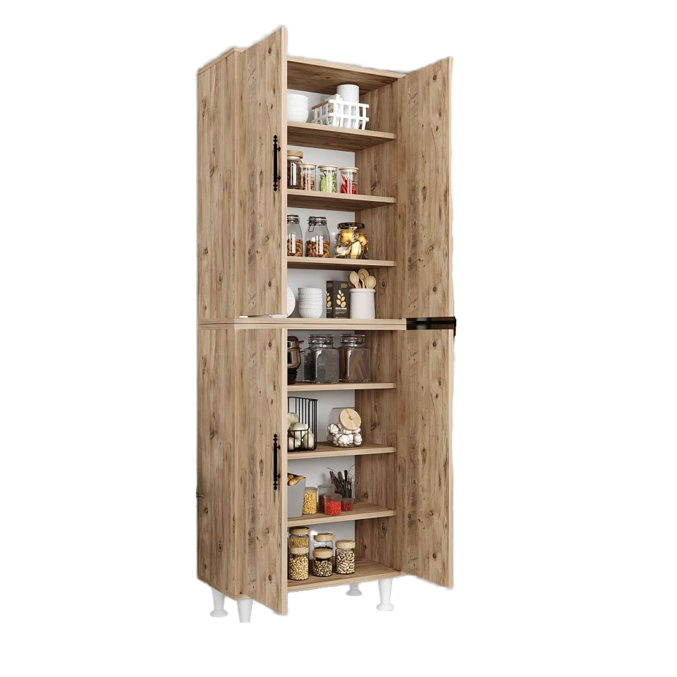 Armoire de cuisine moderne en pin atlantique à 4 portes, organisateur de rangement multifonction en bois MDF massif