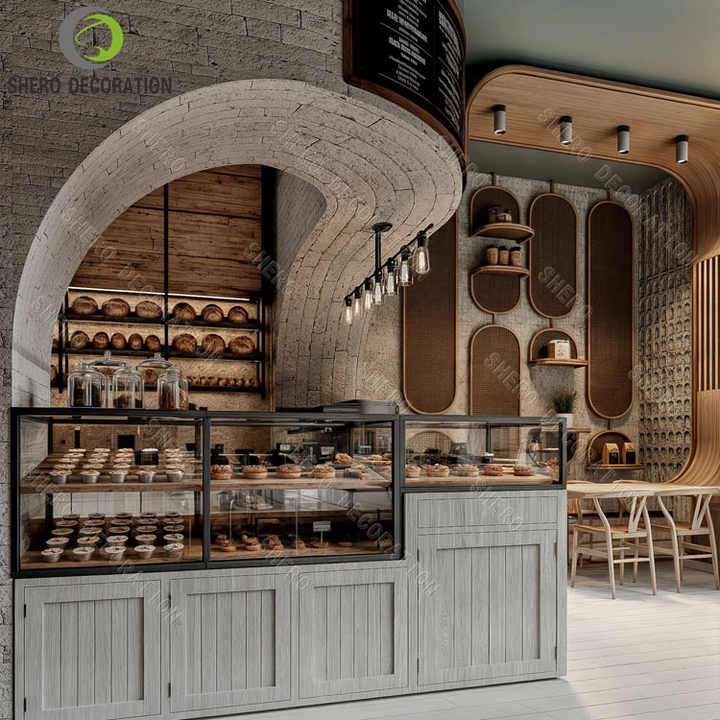 Vitrine de boulangerie moderne de luxe en verre pour biscuits, gâteaux et pains, meuble de boulangerie en bois de haute qualité