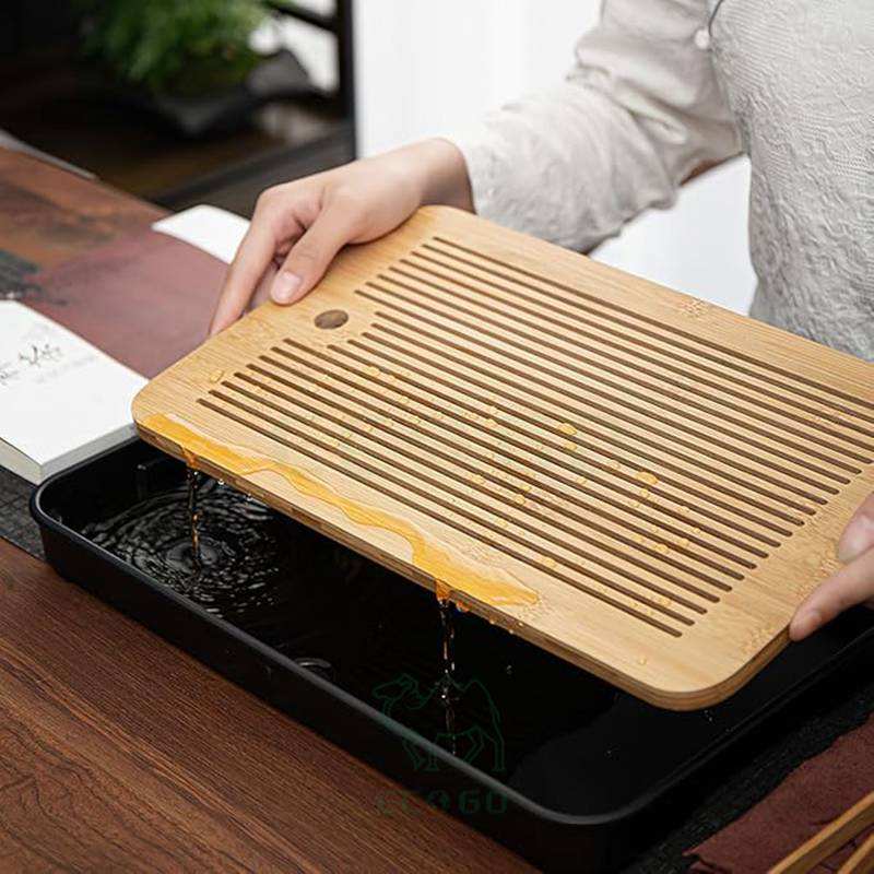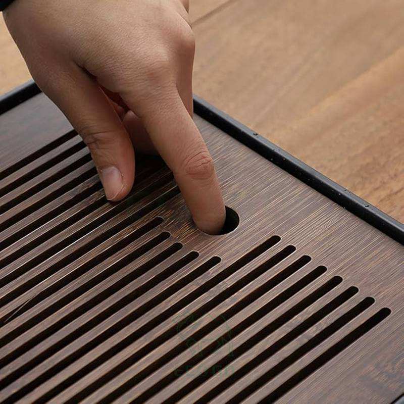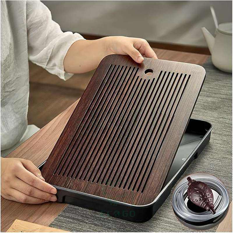 Plateau à thé chinois classique en bambou durable de 14 pouces avec drainage de stockage d'eau, service à thé pour salon de thé