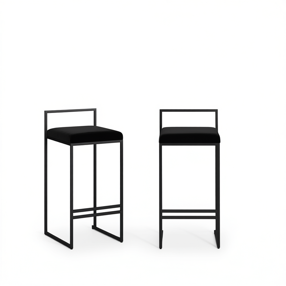 Ensemble de 2 tabourets de bar modernes, meubles commerciaux à structure métallique et revêtement en velours noir