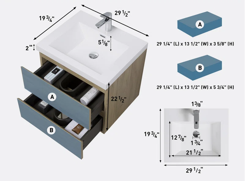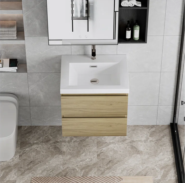 Modern Bathroom Furniture Moisture-proof Melamine Paper Marble Countertop Easy to Clean Storage Capacity Large Vanity Cabinet