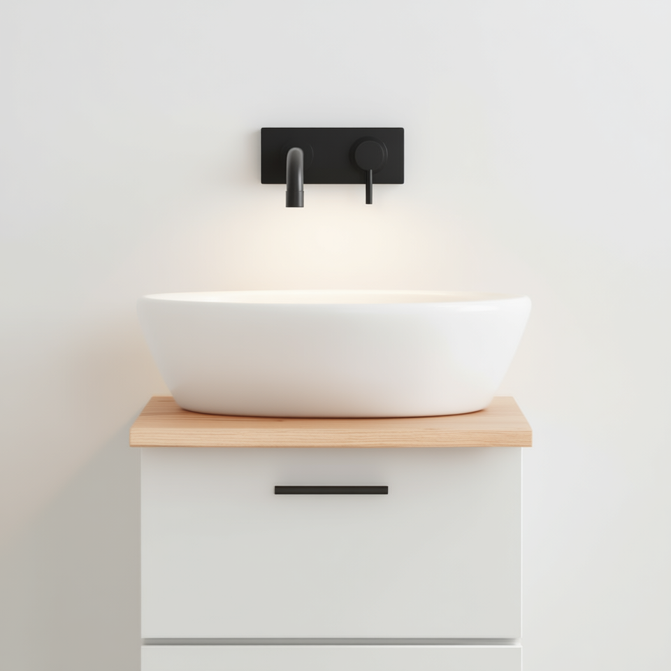 Meuble-lavabo de salle de bain moderne avec comptoir en bois massif 15,7x23,6x0,8 pouces, finition traitée, tiroirs sur pied, vasque en céramique