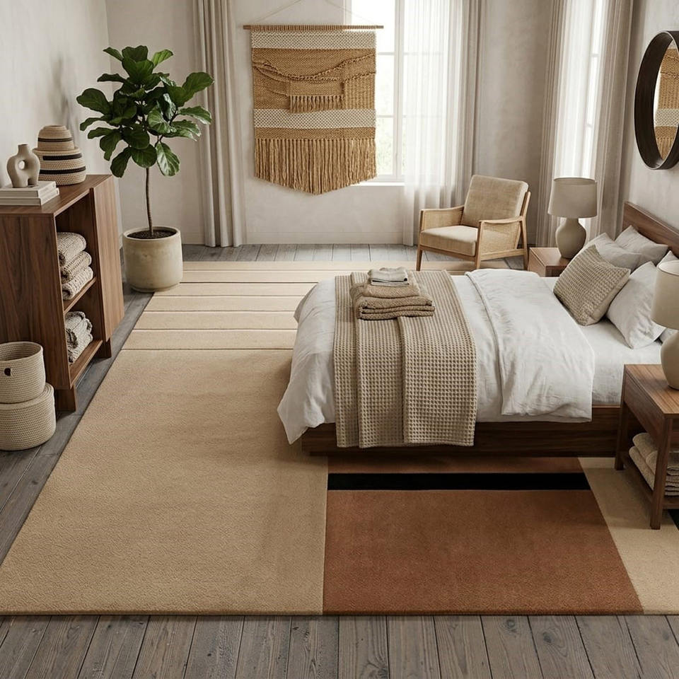 Tapis géométrique Bauhaus moderne | Tapis de design architectural personnalisé | Tapis de sol rayé en laine tufté à la main pour bureau