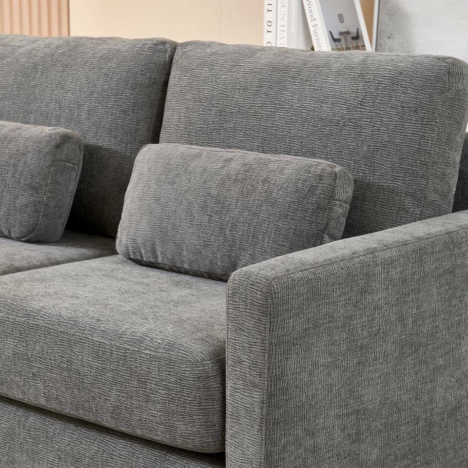 Modern Bedroom Apartment Hotel Villa Dark Gray Chenille Fabric Square Love Seat Corner Sofa Wooden Frame Upholstered Reading