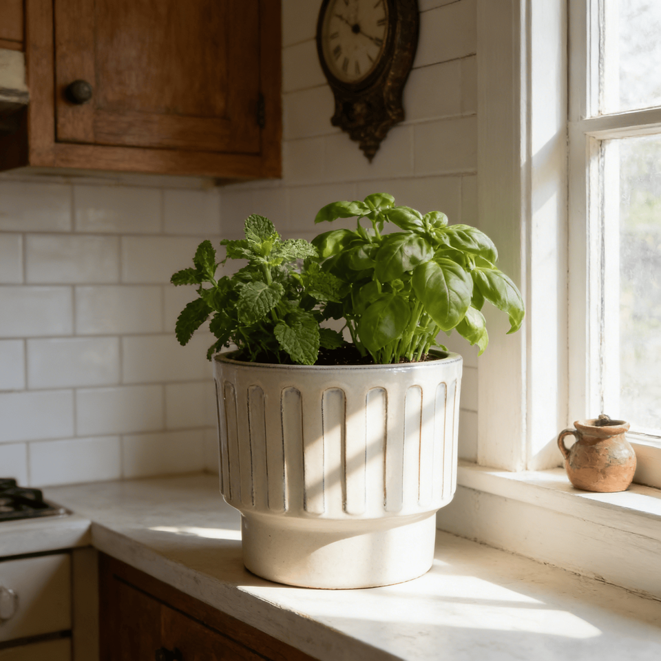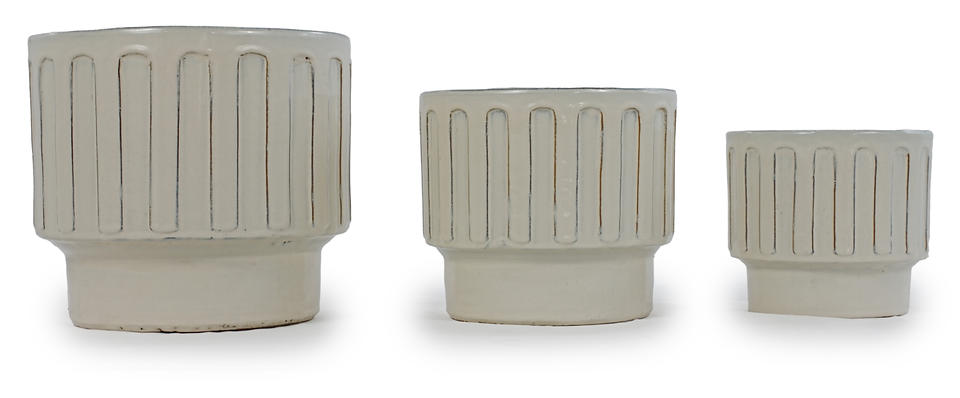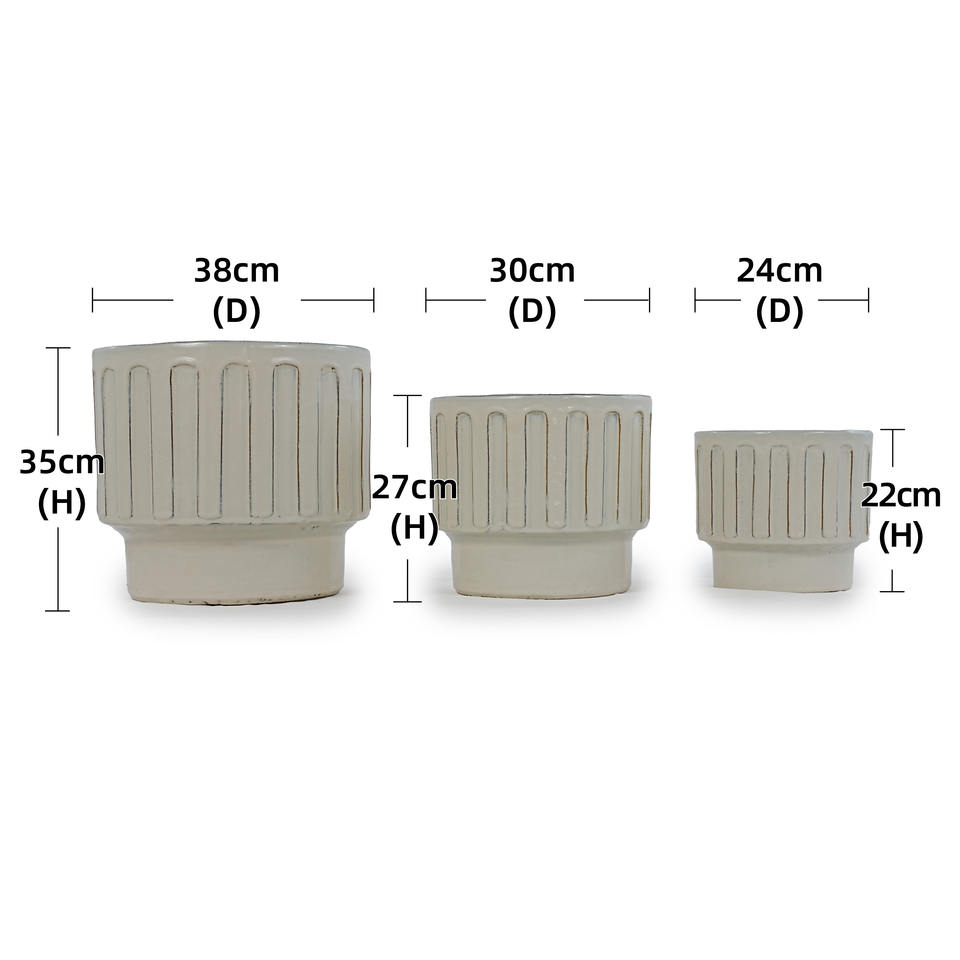 Modern Beige Glazed Vertical-Striped Ceramic Floor Planter Drainage Hole Eco-Friendly Durable Home Indoor/Outdoor Garden Planter