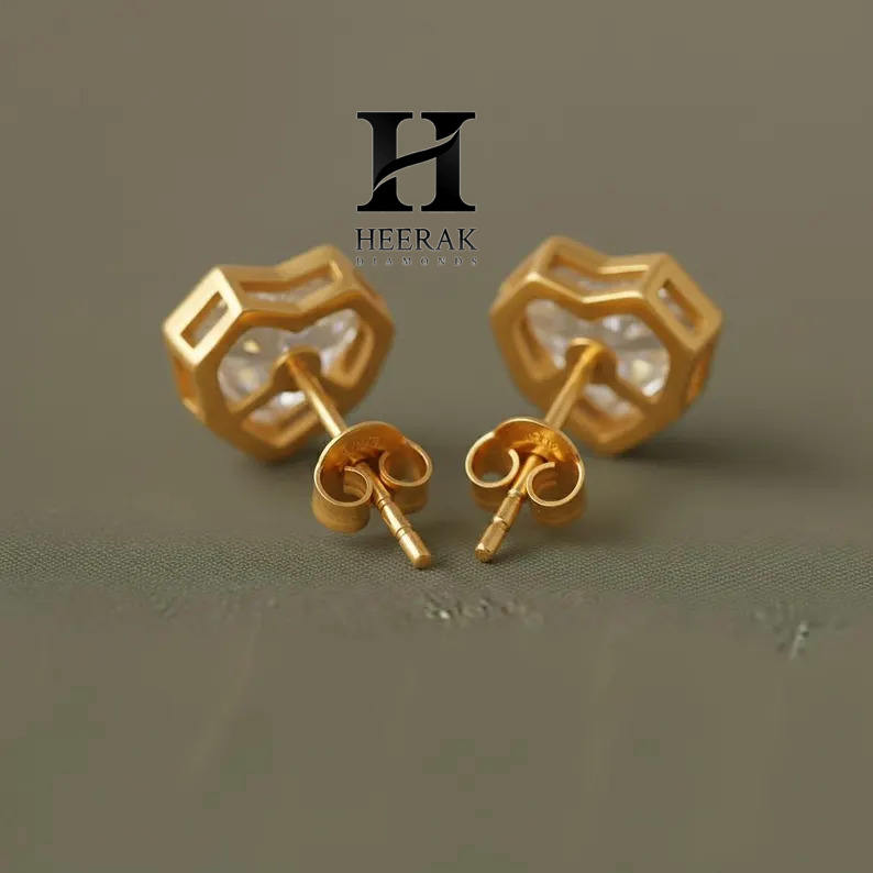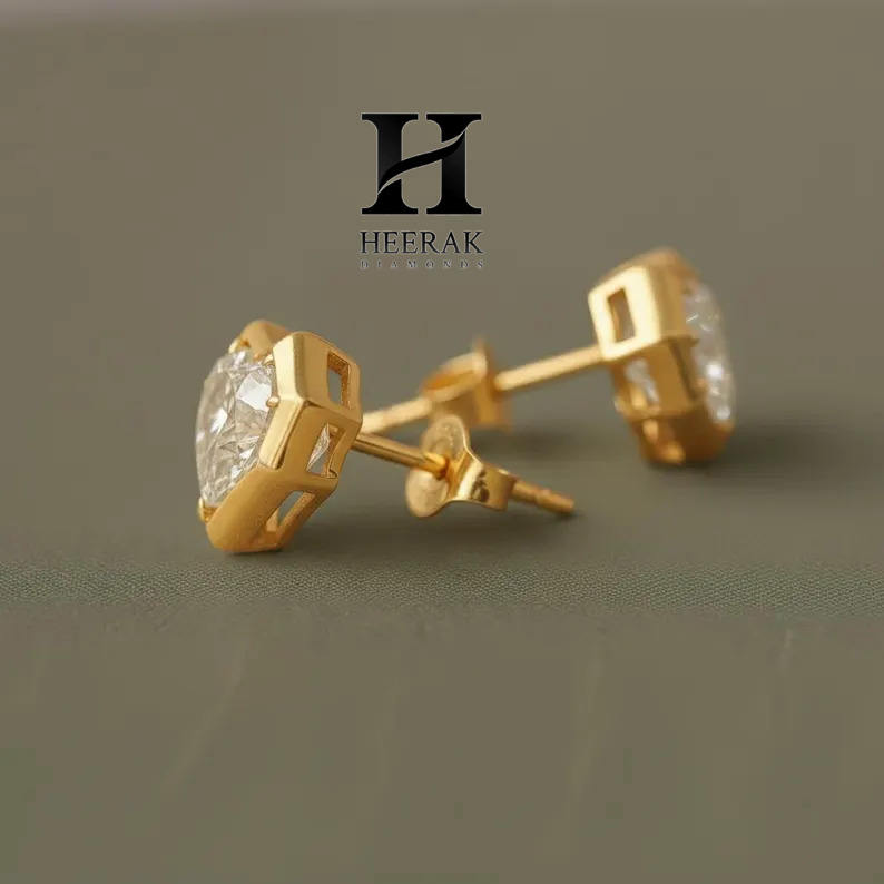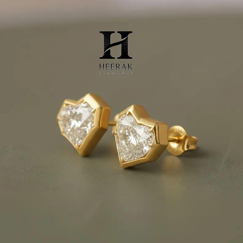 Modern Bezel Set Heart Lab Grown Diamond Stud Earrings 14K Yellow Gold VVS EF Heart Cut Lab Grown Diamonds Geometric Earrings