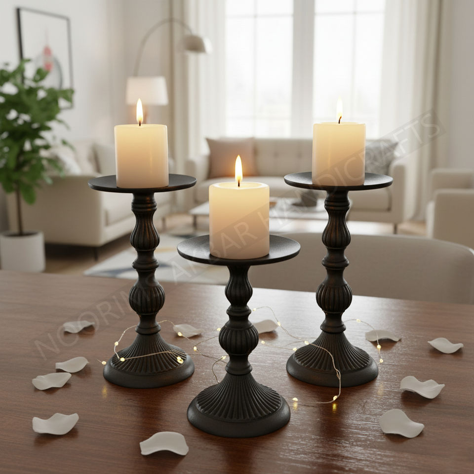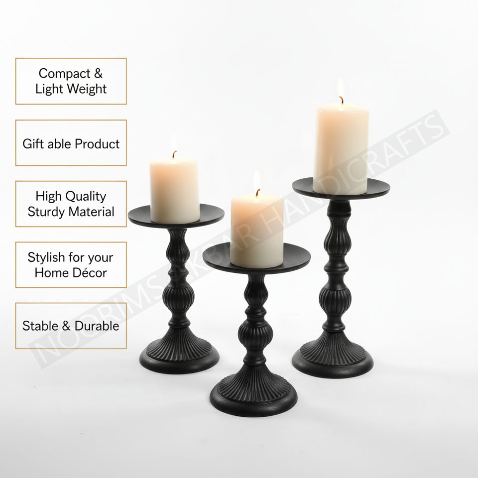 Modern Black Aluminium Candle Holder Solid Cast Stand Contemporary Design Home Event Decoration Tabletop Export Quality