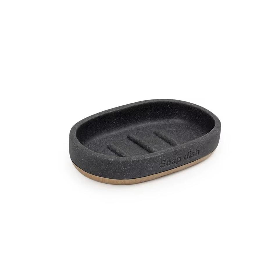 Ensemble de salle de bain moderne en noir et bois Design minimal Accessoires élégants adaptés aux maisons Toilettes invités Hôtels et bureaux