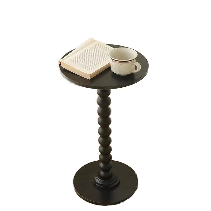 Table d'appoint ronde moderne noire en bois avec piétement, table à boissons pour salon, mobilier nordique pour la maison