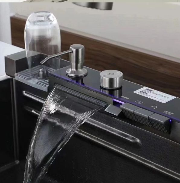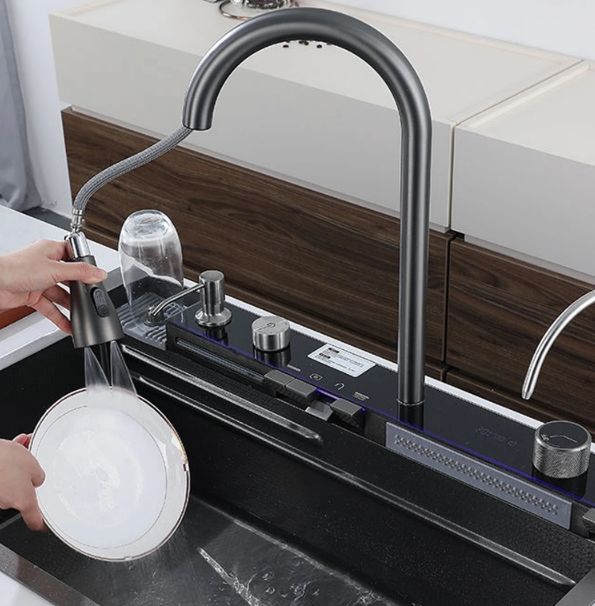 Modern Black Flying Rain Waterfall Smart Kitchen Sink Luxury Organizer Rack Sink Dish Storage Rack OEM Stainless Steel