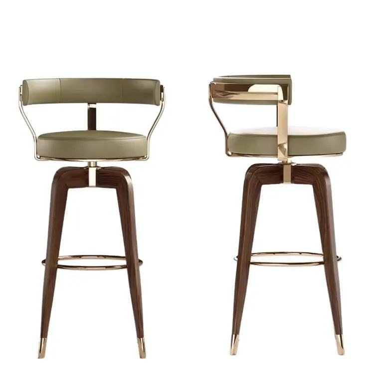 Tabouret de Bar de Cuisine Moderne en Cuir Noir et Or avec Pivotant-Élégantes Chaises de Bar en Bois Massif pour Dîner Haut de Gamme