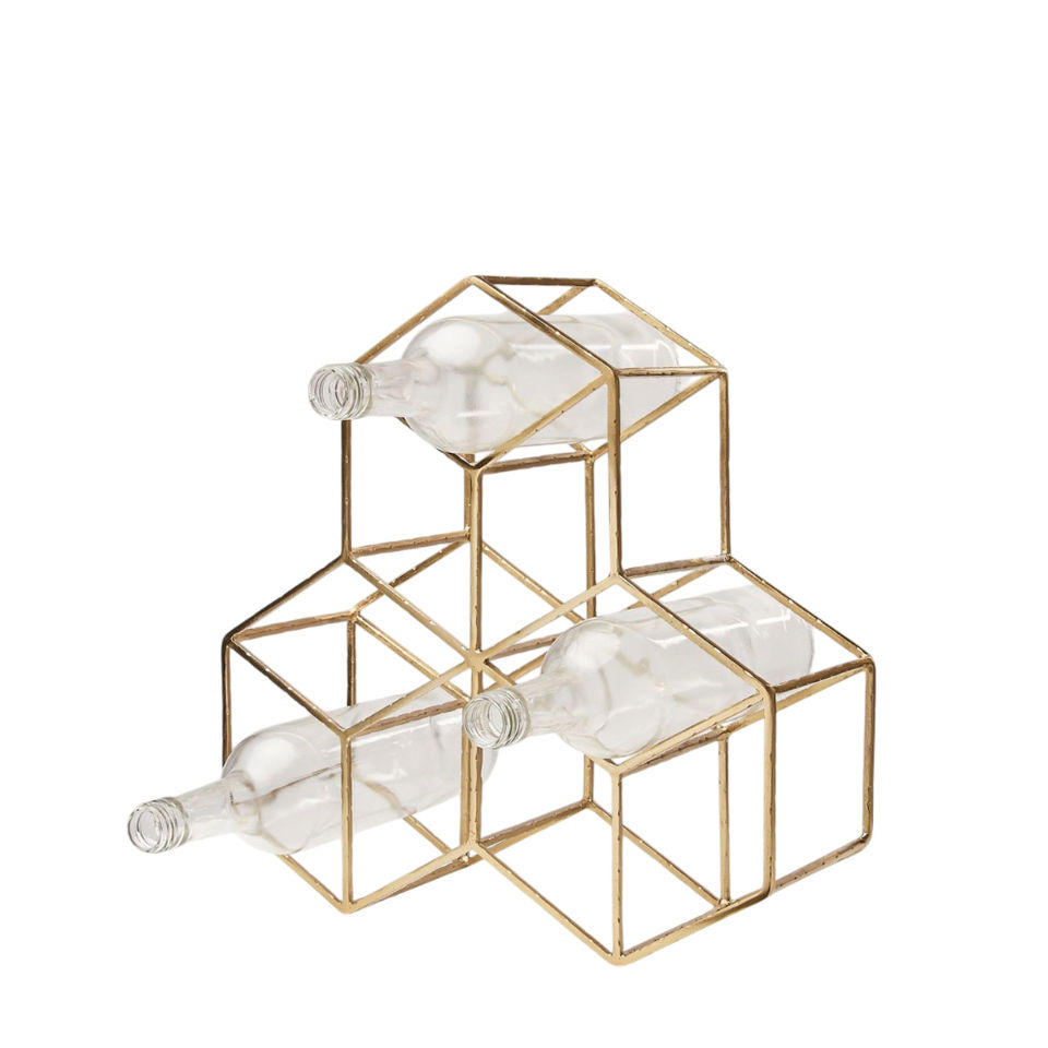 Porte-bouteilles et présentoir à vin en métal noir moderne, autoportant, géométrique, hexagonal, pour table, rangement et présentation de bouteilles pour bar à domicile