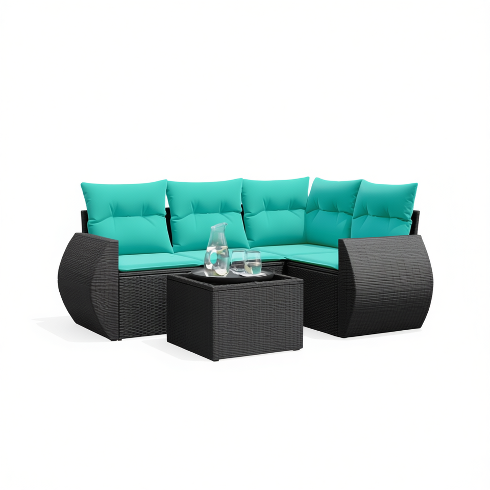 Ensemble de canapés de patio en polyrotin noir moderne avec coussins, mobilier d'extérieur pour 5 personnes, design contemporain