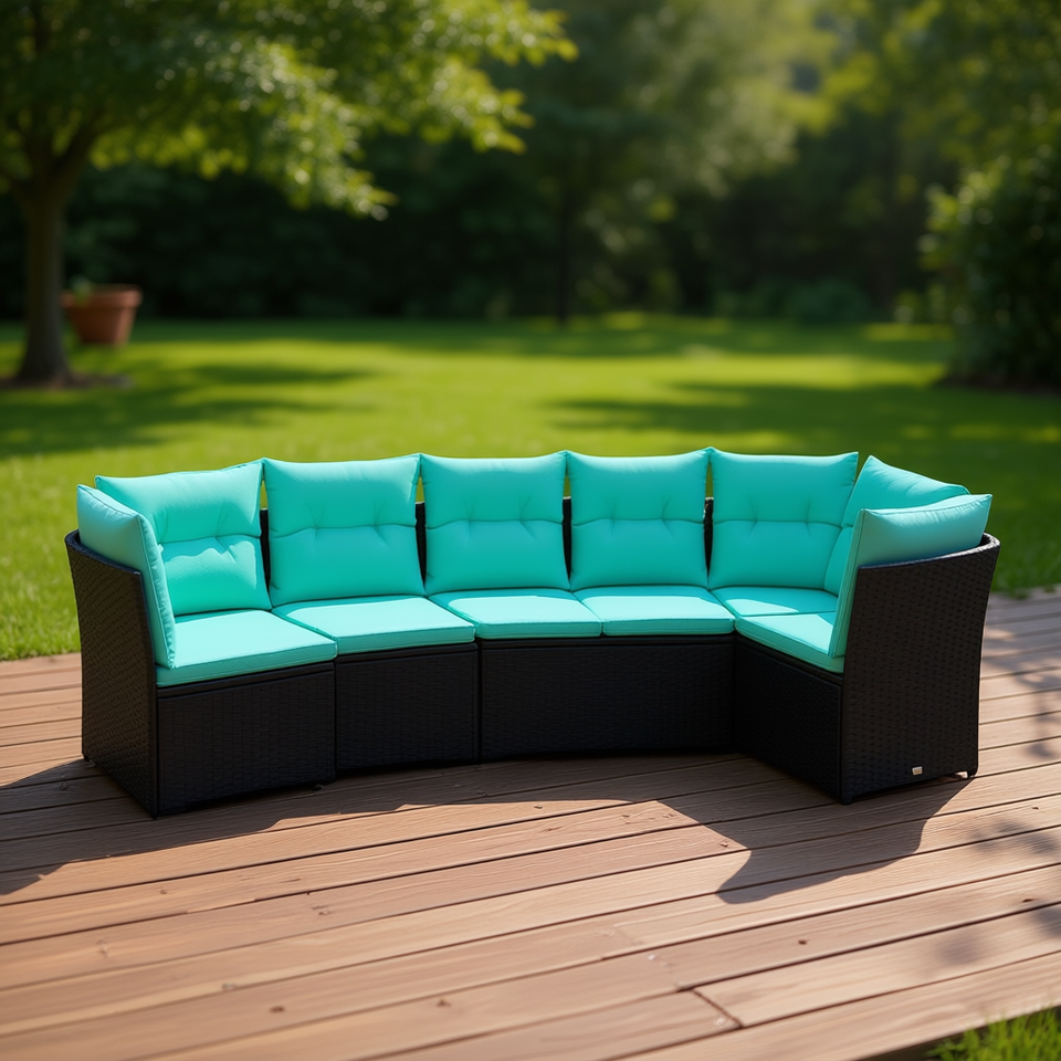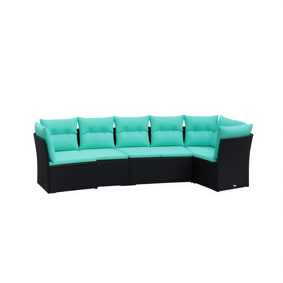 Ensemble de canapés de patio en polyrotin noir moderne, 6 places, meubles d'extérieur avec coussins, design contemporain