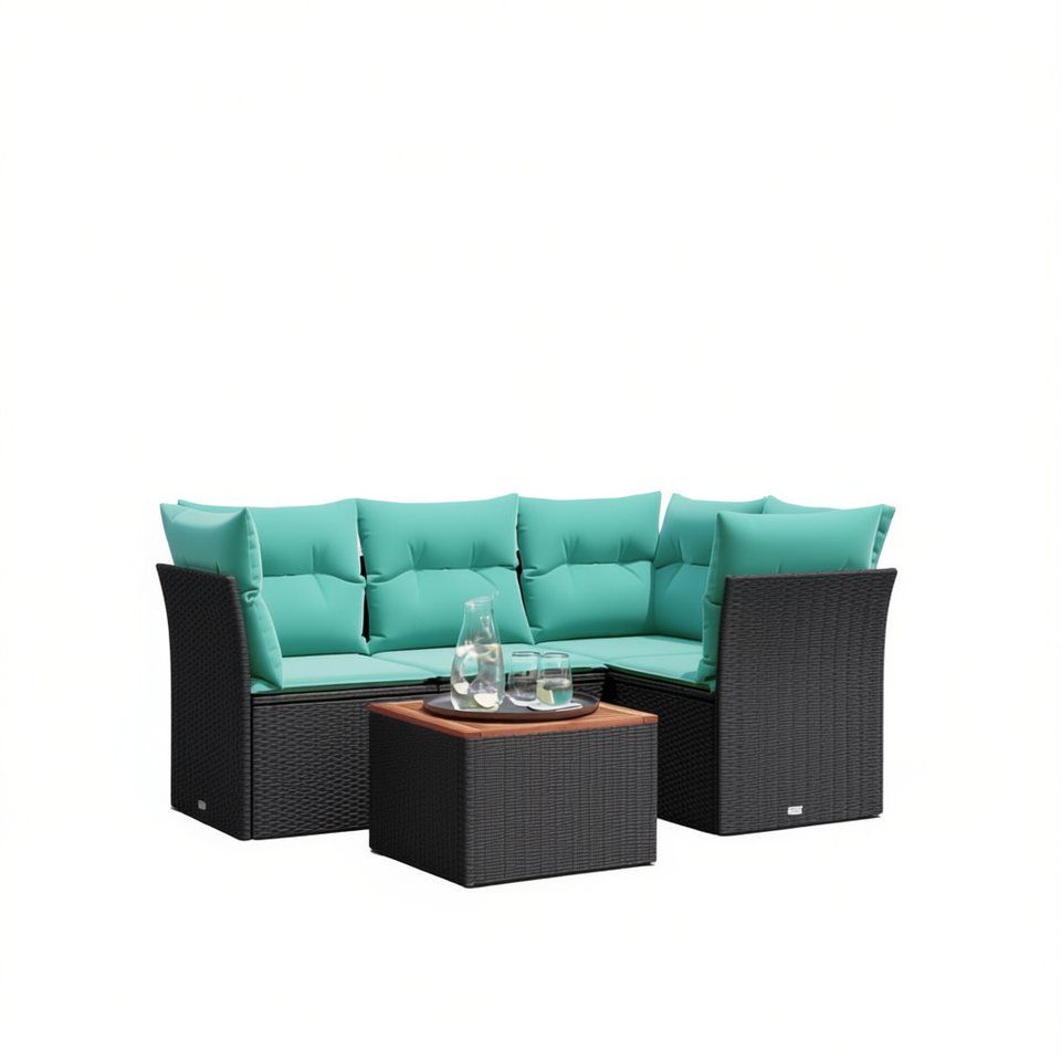 Ensemble de canapés de patio en polyrotin noir moderne avec coussins, mobilier d'extérieur pour 5 personnes